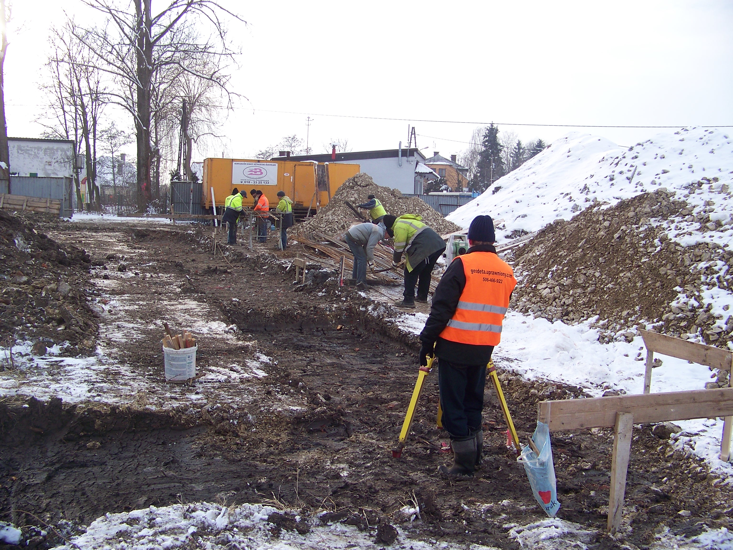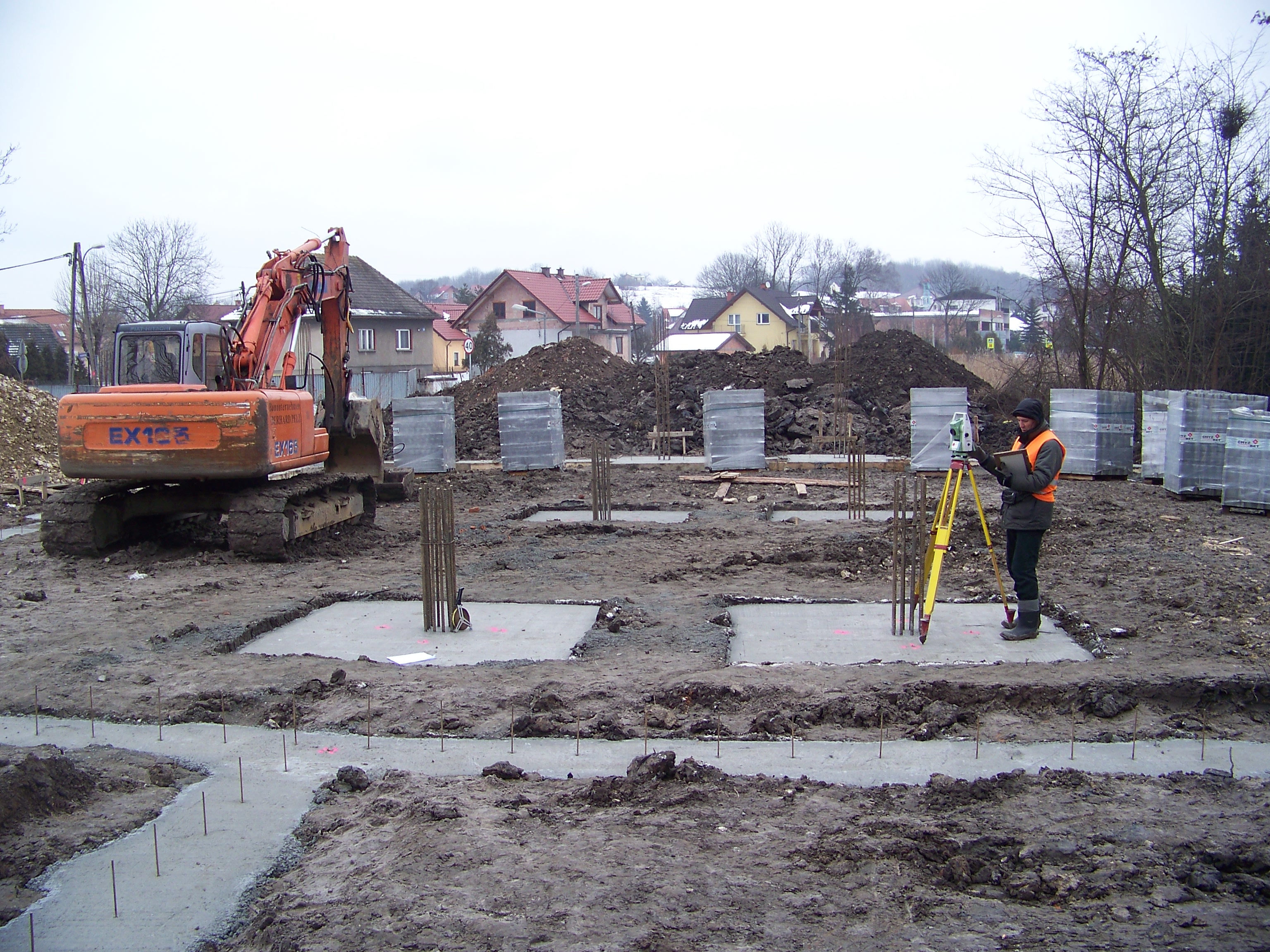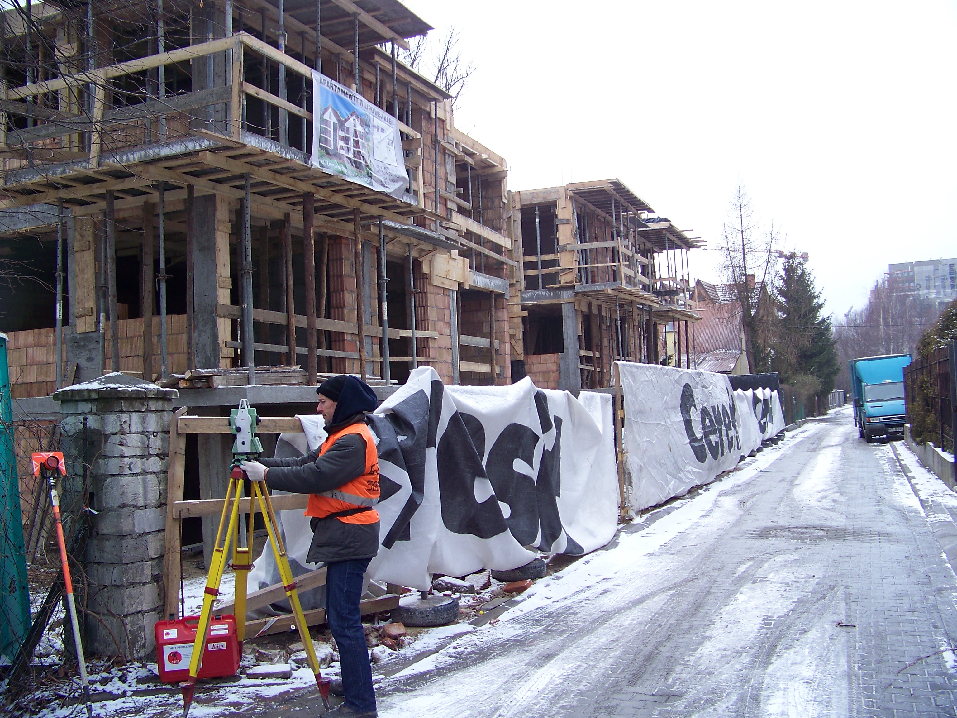 Tyczenie osi domu jednorodzinnego na krakowskich Krzemionkach: